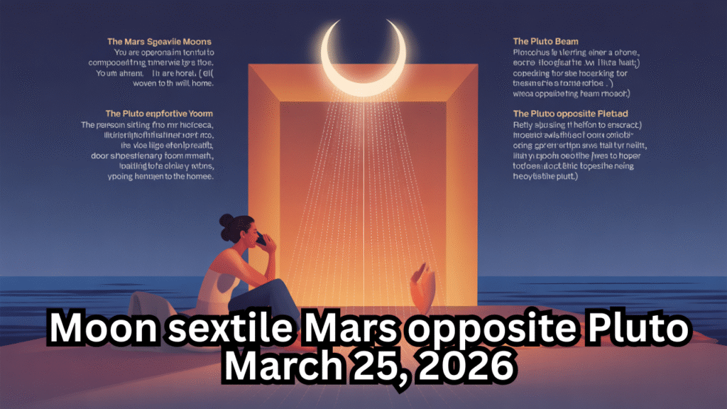 Your relationship with shared resources and deep intimacy is touched by nurturing energy and transformative insight. The Moon in your 8th house sextiles Mars in your 7th house, bringing a partner who supports your emotional vulnerability or a shared resource that deepens your bond. A financial or intimate matter resolves with care. Yet the Moon’s opposition to Pluto in your 2nd house warns of power struggles around self-worth and resources—a financial issue may surface, asking you to release control and trust your inherent value.